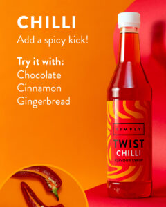Twist Syrup - Chilli. Toasted, Cookie & SaltedThe Twist range allows for quick transitions between flavour profiles like switching from a caramel hot chocolate to a chilli caramel hot chocolate with just a single 4ml pump. This not only simplifies training for staff and becomes a driver of revenue but also initiates creative opportunities for marketing campaigns.