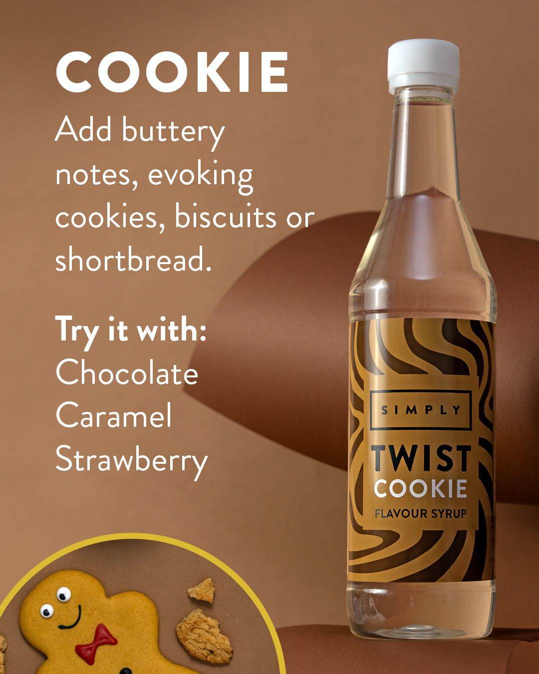 With dessert-inspired syrups among the top three global growth drivers in flavour innovation (Innova, 2024), Simply Twist Cookie is perfect for all seasonal menus including frappes, lattes, and more. Try our Gingerbread Cookie Frappe recipe to bring this nostalgic trend to life in a deliciously festive way.